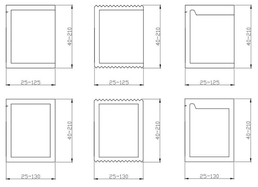 橫封輥筒分割數(shù)為 2分割時(shí)100-200mm 3分割時(shí)80-150mm 4分割時(shí)55-100mm 5分割時(shí)4-80mm 6分割時(shí)40-60mm ※根據(jù)橫封寬度袋長可變范圍不同。 |