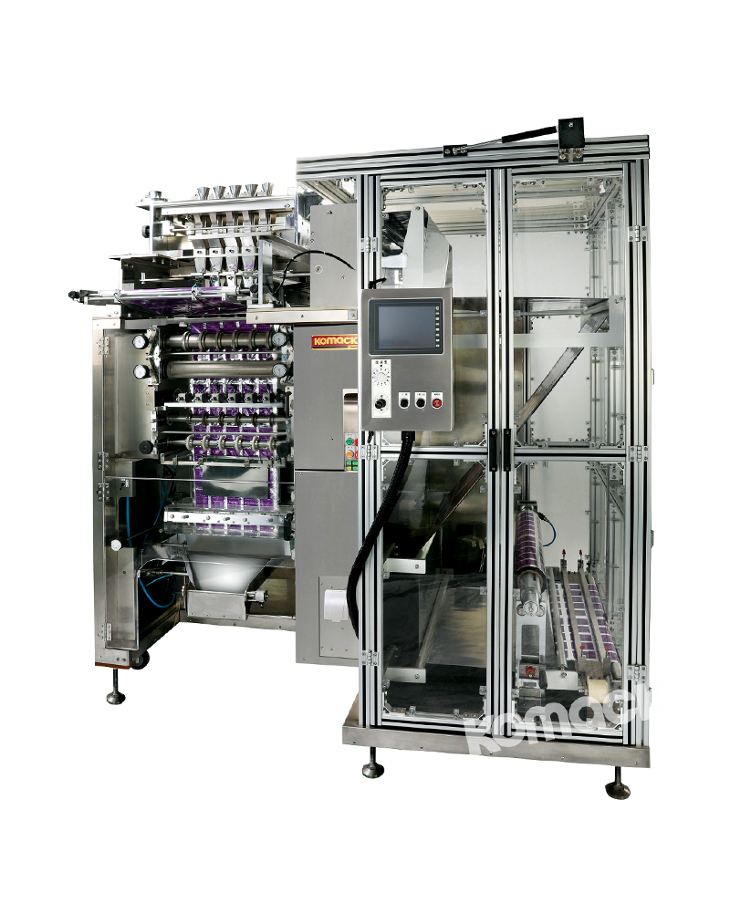 本機是實現了高生產性的多列粉末?顆粒自動充填包裝機,采用雙輥筒形式的充填方式,封口美觀,穩定性出色。另外,本機可多列包裝,建議您在需要多列化且制袋寬×列數+雙邊切割寬合計500mm以內情況下時使用,因此可實現連包品及單包品的高效率生產。通過配備我司研發的光電控制裝置,可選擇生產帶色標產品或無色標產品。